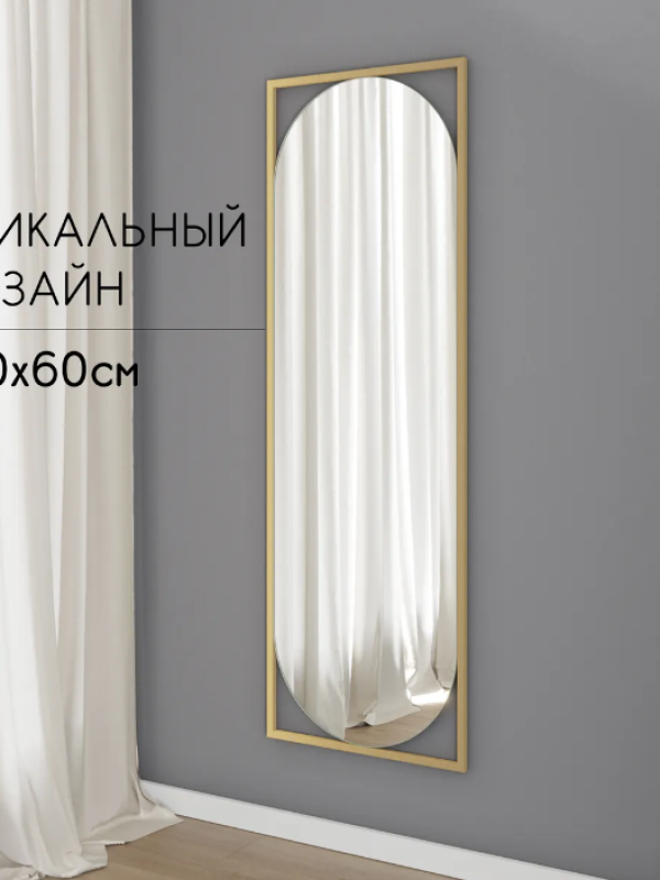 Зеркало «Lustrous middle». Артикул GMZ-11-2-1/2/3 Интересное дизайнерское решение в виде достаточно крупного настенного зеркала овальной формы в прямоугольной раме идеально для реализации любого современного интерьера. Сильно вытянутый овал позволяет не только визуально увеличивать пространство, но и делать потолки более высокими. Зеркало подходит для интерьеров, выполненных как в классических, так и в современных стилях и может использоваться для помещений любого назначения. Высококачественное зеркальное полотно и прочная металлическая рама делают эту модель абсолютно безопасной. На тыльной стороне рамы имеются специальные крепёжные элементы.Характеристики:– габаритные размеры – 1800х600х20 мм, металлический профиль квадратный – 20х20 мм; – зеркальное полотно производства AGC, Бельгия; – высокопрочный полимерный слой, порошковая окраска; – возможные цвета – золотой, чёрный, белый; – саморезы для крепления к стене в комплекте; – вес – 12 кг; – гарантия – 1 год.